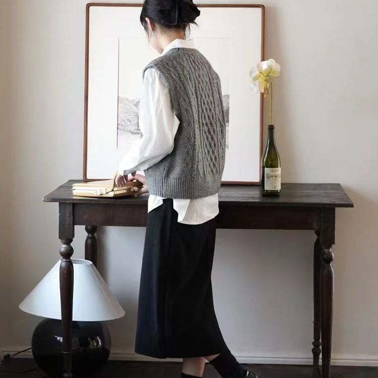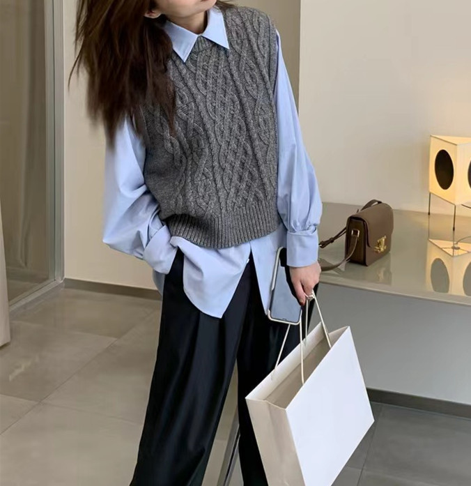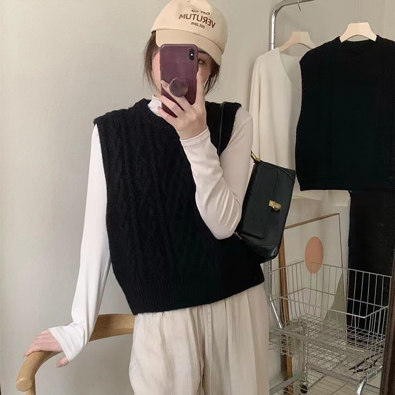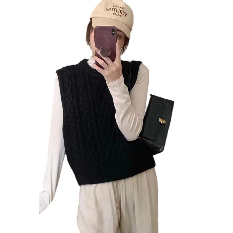 Brownm Brownm Ancient Ways Twist Design Sense Knitting Vest Female Spring And Autumn New Korean Department Fold Wear Round Collar Sleeveless Vest Outside The Jacket