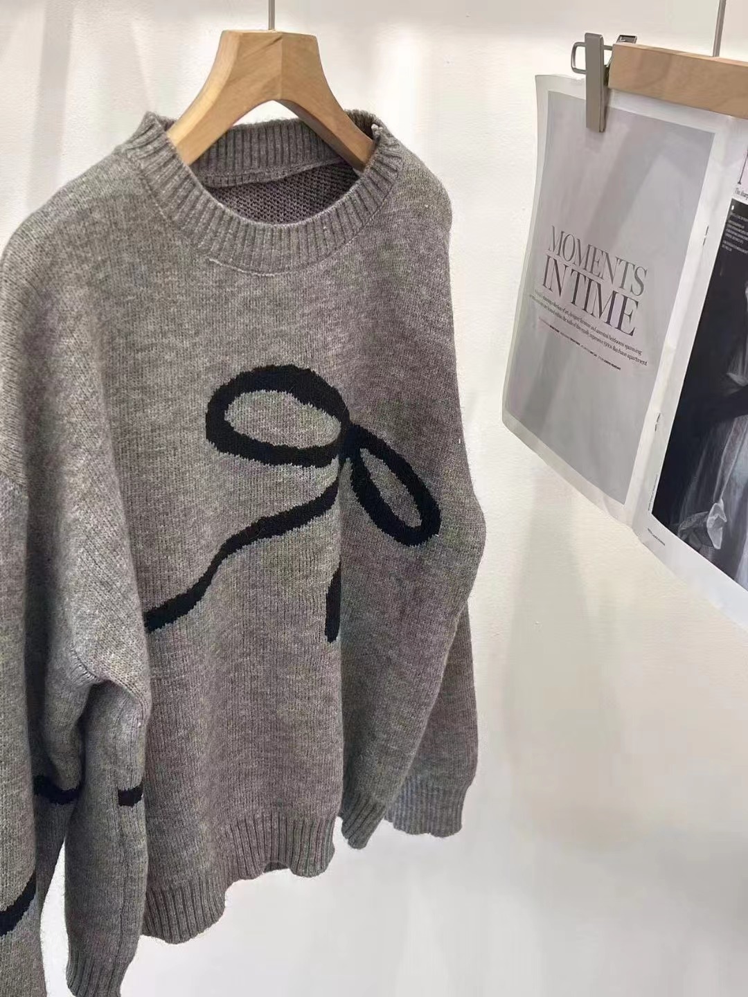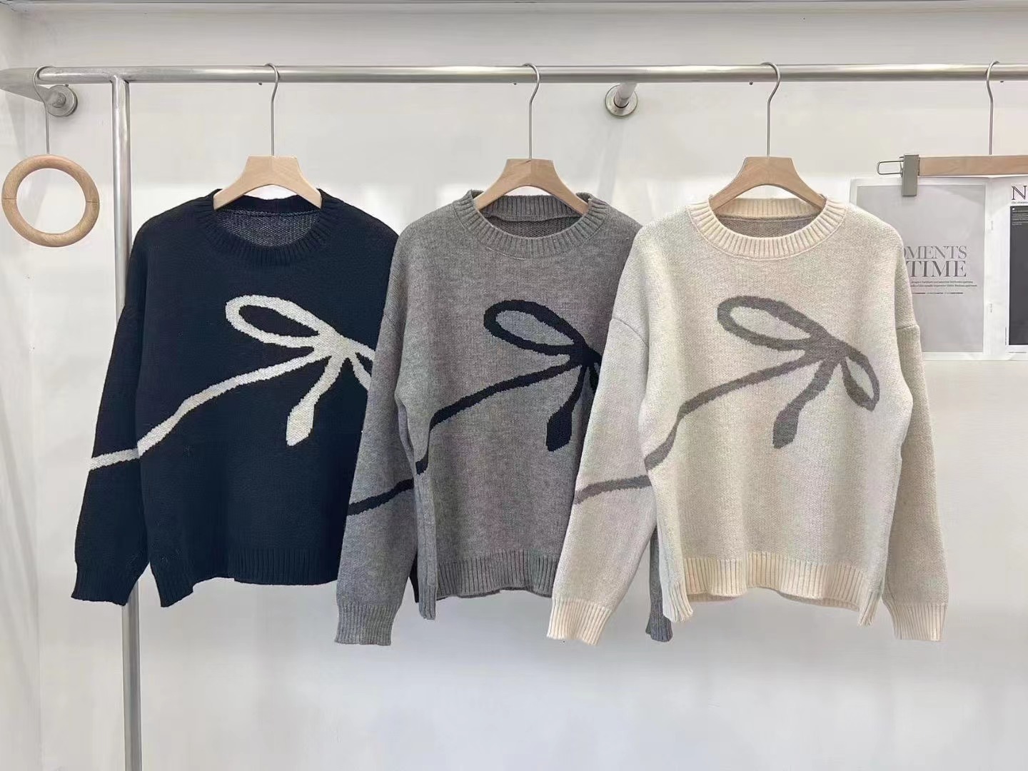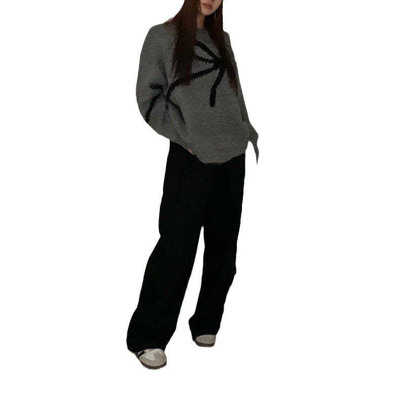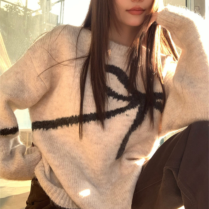 Brownm Brownm New 2024 Korean Version Of The Versatile Design Bow Knit Loose Soft Waxy Round Collar Sweater