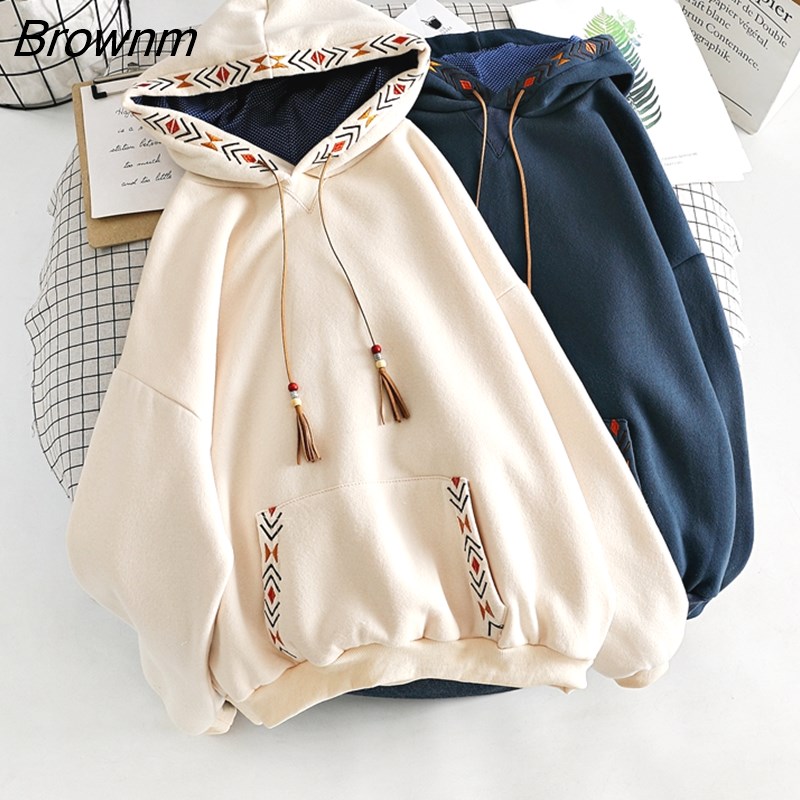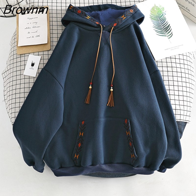 Brownm Hoodies Embroidery Women Sweatshirt Autumn Winter Long Sleeve Harajuku Pullovers Female Sudadera Mujer