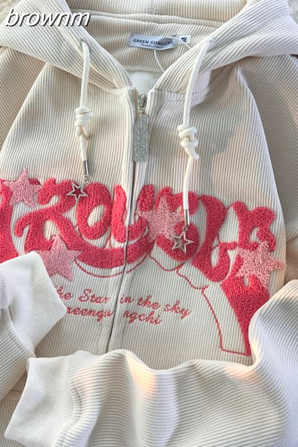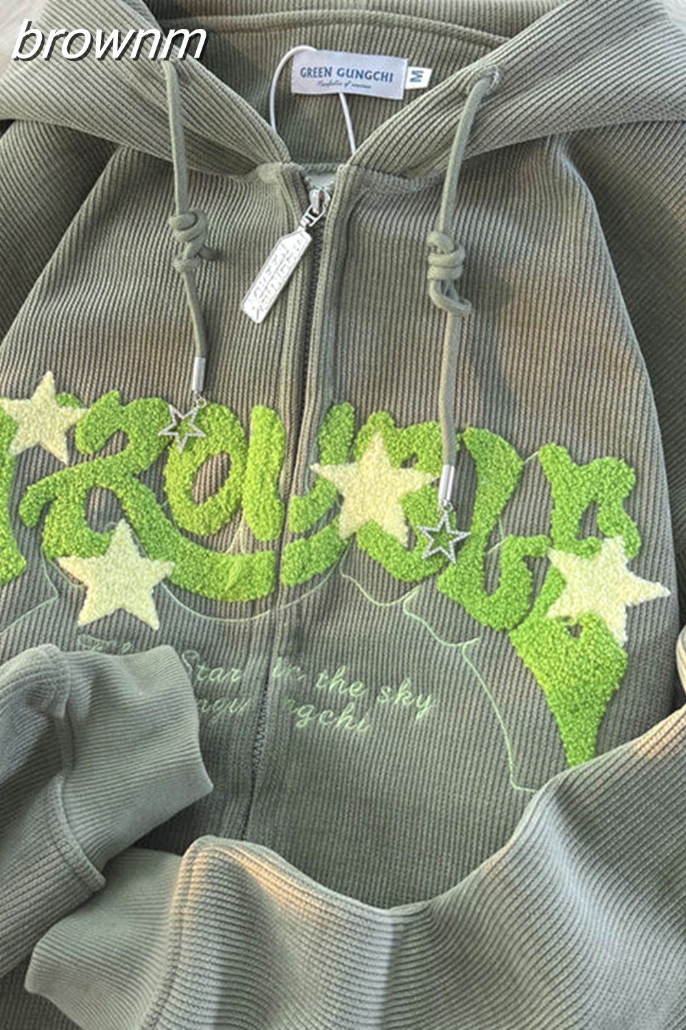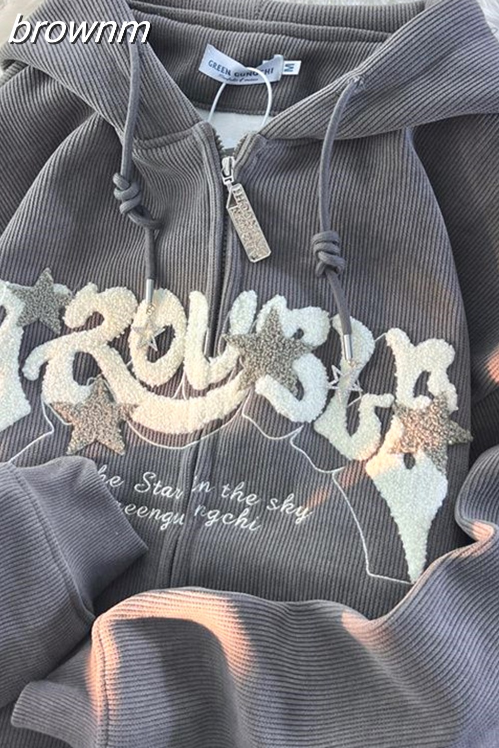 brownm Vintage Corduroy Cardigan Jacket Women's Autumn Winter Y2k Loose Letter Embroidery Harajuku Fleece Warm Sweatshirt