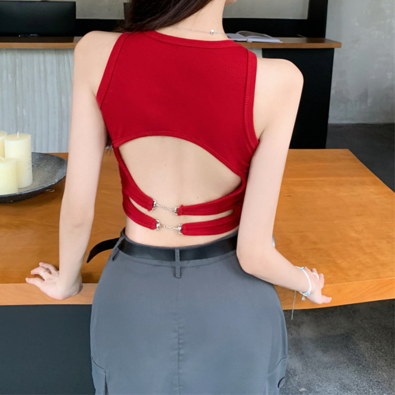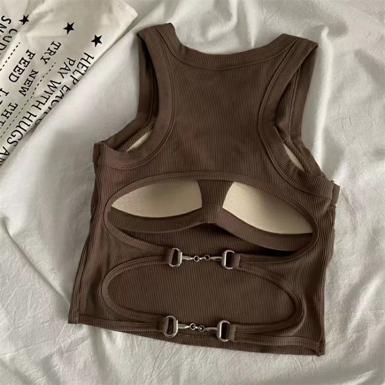 Brownm Women Sports Tank Tops With Bra Pad Casual Crop Tops Backless Knitt Running Camisole For Women Y2K Streetwear Tops