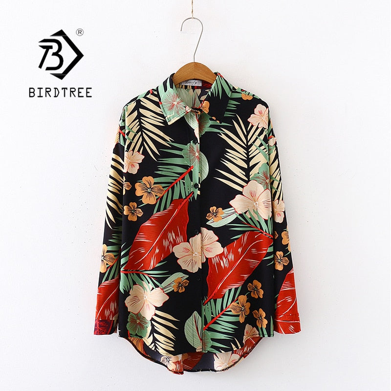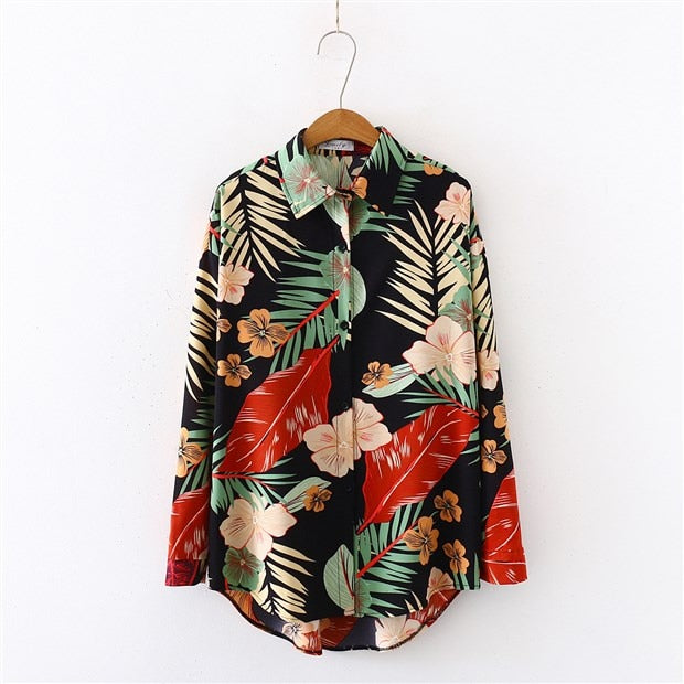 2020 Summer New Women Plantain Leaf Floral Print Chiffon Blouse Autumn Long Sleeve Black Shirt Vintage Loose Tops Casual Blusa