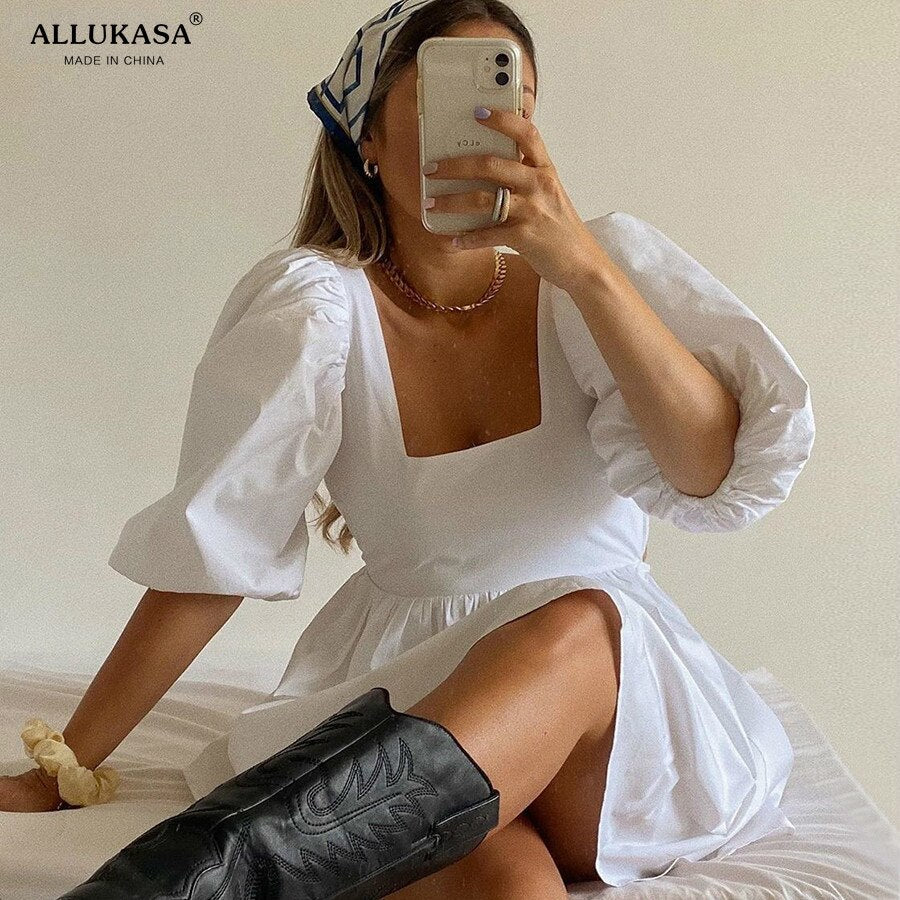 2020 Women Summer sexy Dress Summer Fashion White Elegant Puff Sleeve Backless Party Beach Dress Vacation Casual Mini Dress
