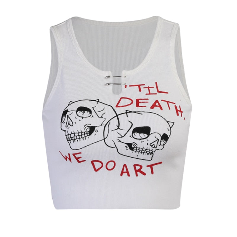 2021 Fashion White Tank Tops Womens Summer Sleeveless Knitted Sexy Vest Fashion Print Cropped Tops Ladies Shirts Harajuku