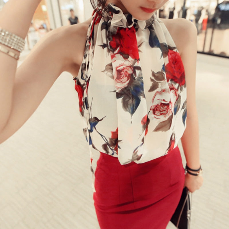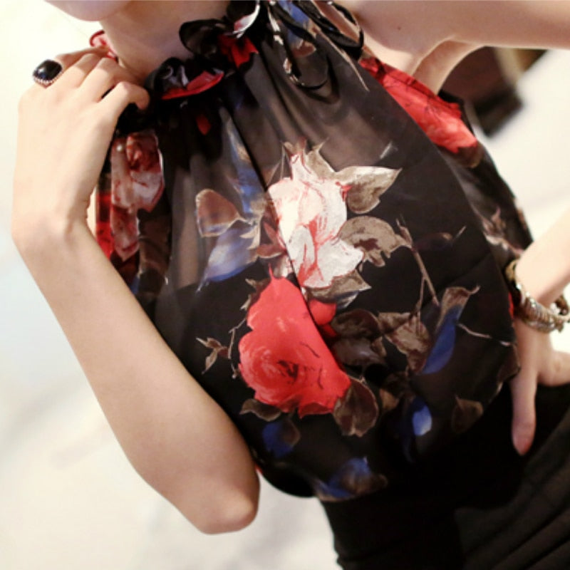 2021 New Fashion Women Tops Chiffon Floral Print Blouses Ruffles Turtleneck Shirt Vest Design Loose Brand women clothing C988 30