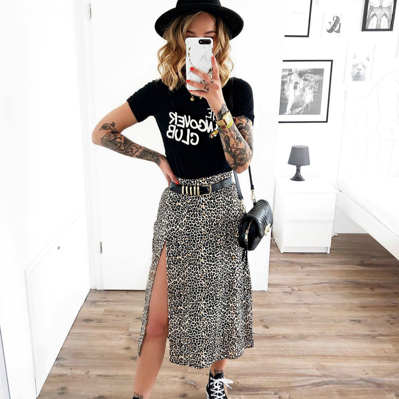 2021 New Summer Long Skirts Women Leopard/Floral Printed High Waist Split Skirt Casual Bohemian Skirt Female