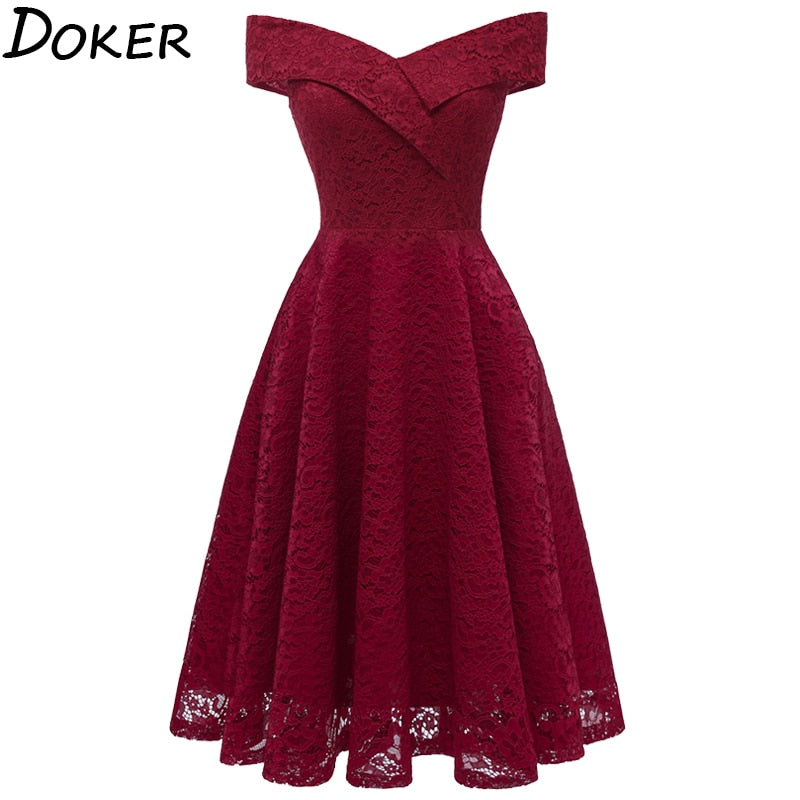 Type: Women vintage lace evening party dress