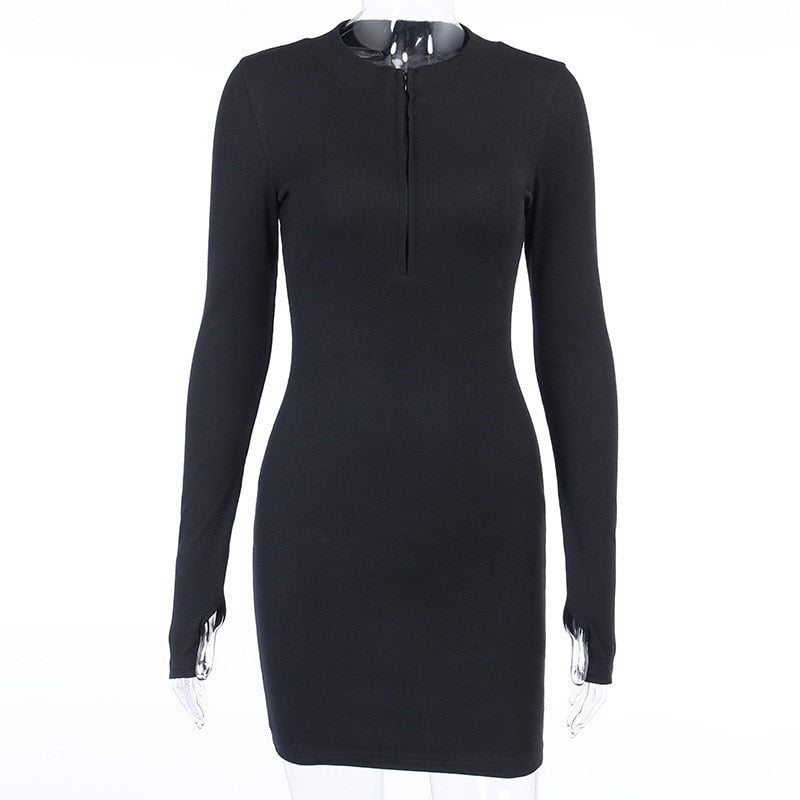 2021 New Women Mini dresses V-neck Solid Stretch Bodycon Pencil Stand Collar Zipper Deep Party Winter Fall Bodycon Ribbed Dress
