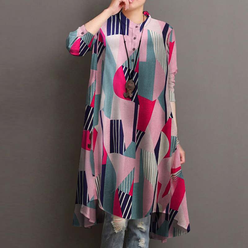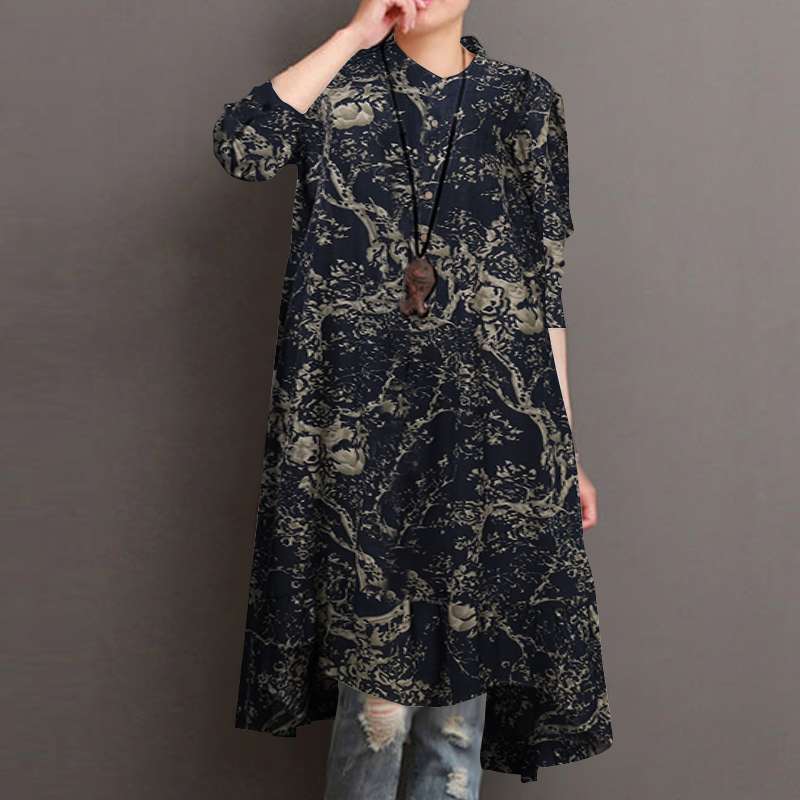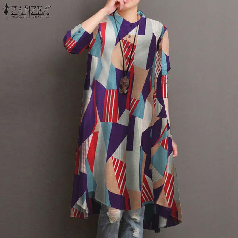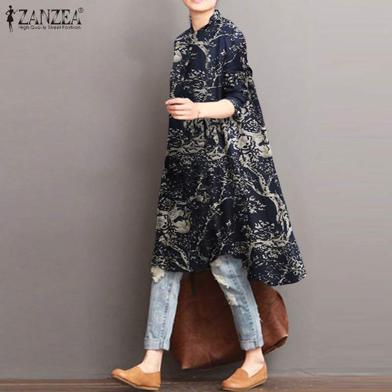 2022 ZANZEA Autumn Women's Asymmetrical Blouse Vintage Printed Long Shirts Casual Long Sleeve Blusas Button Tops Tunic