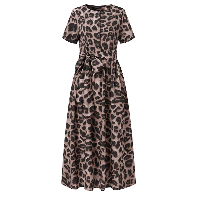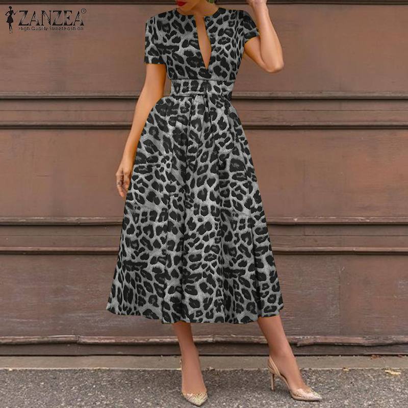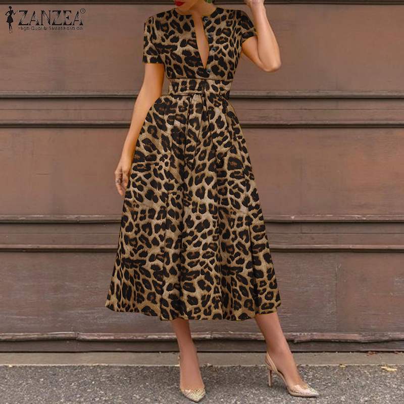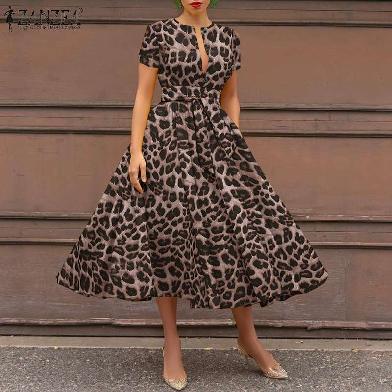 2022 ZANZEA Bohemian Summer Leopard Printed Sundress Fashion Holiday Short Sleeve A-line Midi Dress Party Vestidos Robe Femme