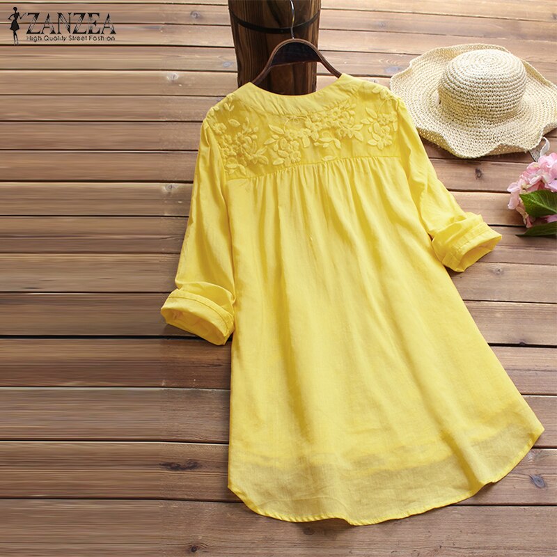 2022 ZANZEA Cotton Linen Tops Women Blouse Elegant V Neck Long Sleeve Shirt Casual Autumn Lace Shirts Vintage Embroidery Blusas