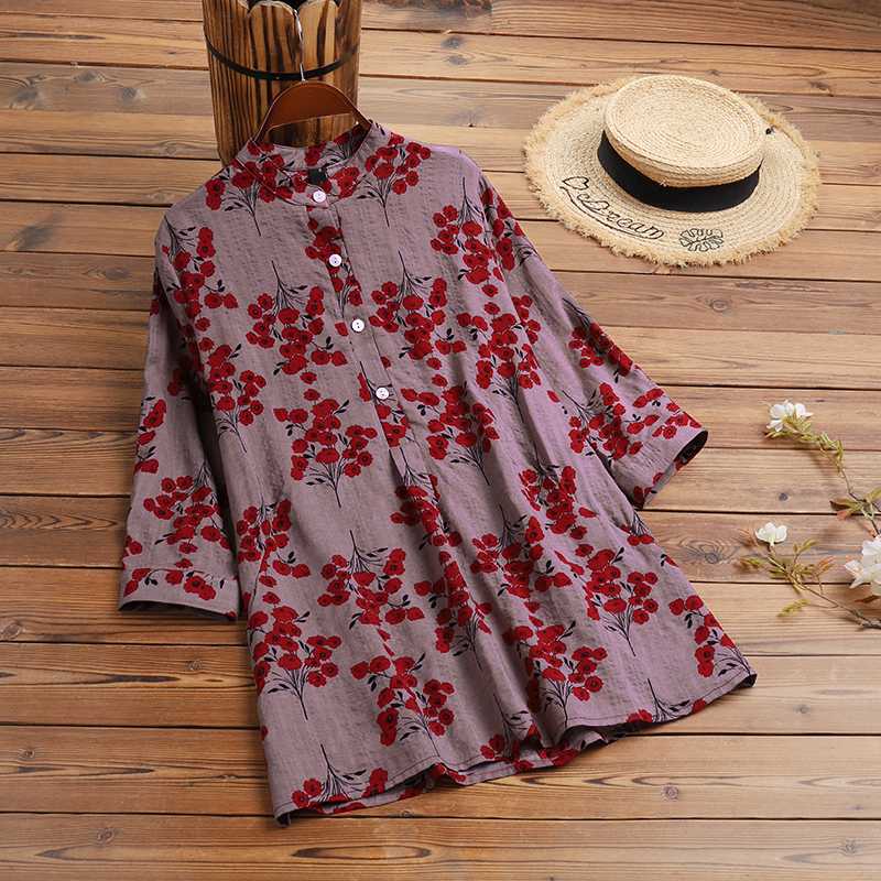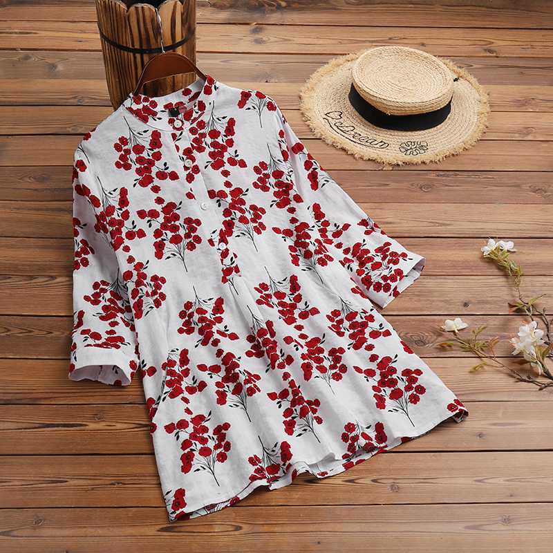 2022 ZANZEA Summer Vintage Floral Printed Blouse Women Elegant Casual 3/4 Sleeve Shirt Bohemian Holiday Blusas Female Tunic Tops