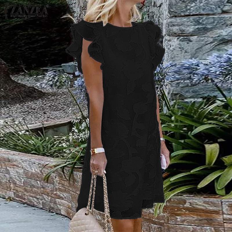 2022 ZANZEA Summer Women O Neck Sleeveless Ruffles Sundress Stylish Elegant Lace Crochet Dress Party Knee-length Vestidos Kaftan