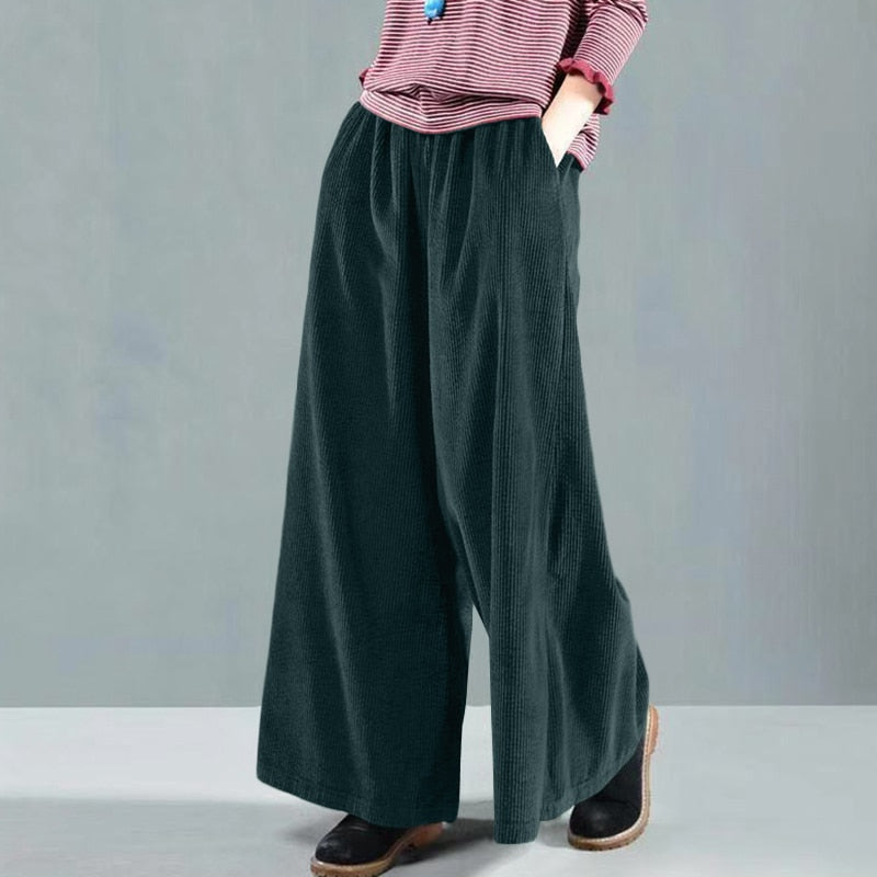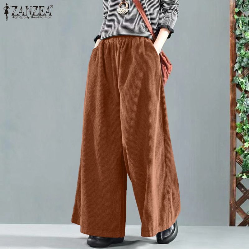 2022 ZANZEA Vintage Women Corduroy Wide Leg Pants Fashion Loose Harem Palazzo Autumn Trousers Elastic Waist Solid Long Pantalon