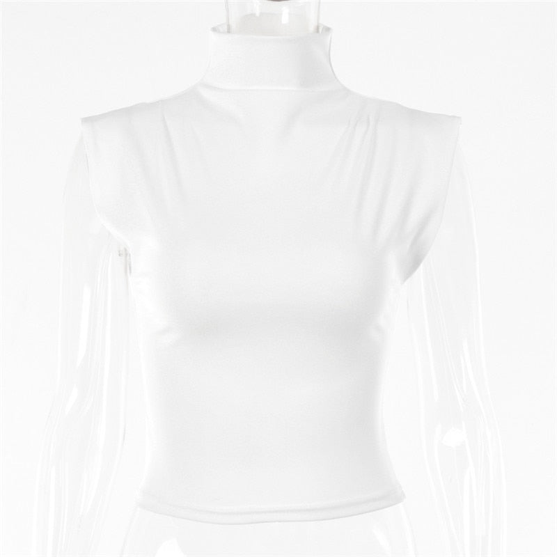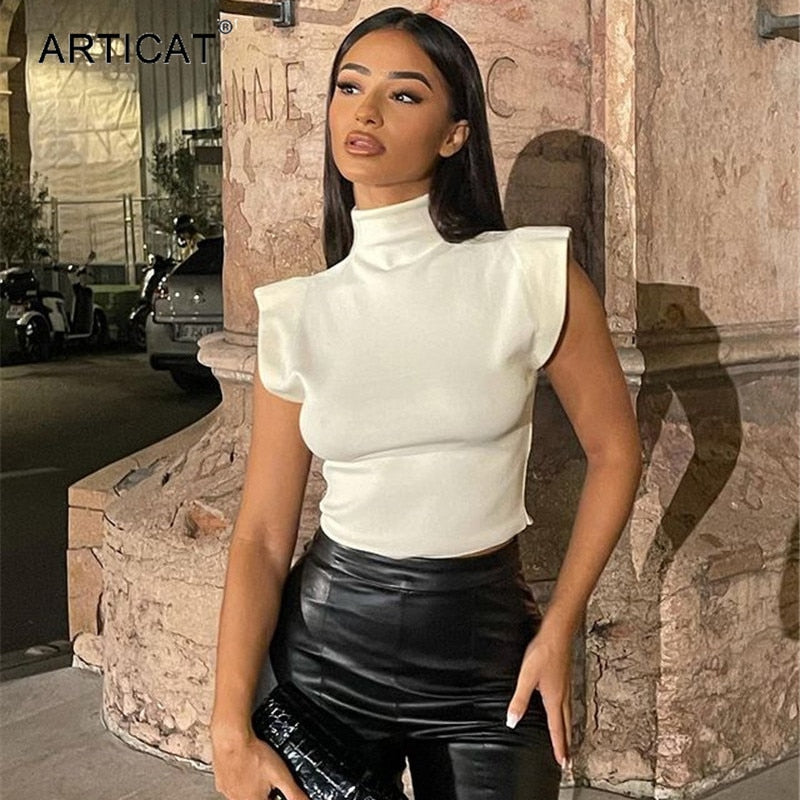 ARTICAT New Basic Women T shirt Casual Black White Female Crop Top 2021 Clothing Ladies Autumn Street Turtleneck Tee Shirt