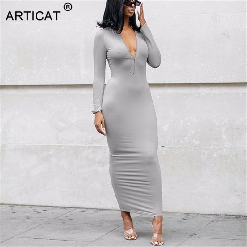 Articat Sexy Bandage Full Sleeve Party Dress Women Solid Color O-Neck Summer Maxi Bodycon Dresses For Ladies Autumn Vestidos