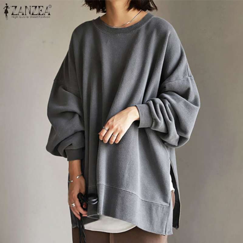 Autumn Sweatshirt Women Long Sleeve Loose Hoodies Pullover ZANZEA Winter Casual Split Sweatshirts Hooded Streetwear 7