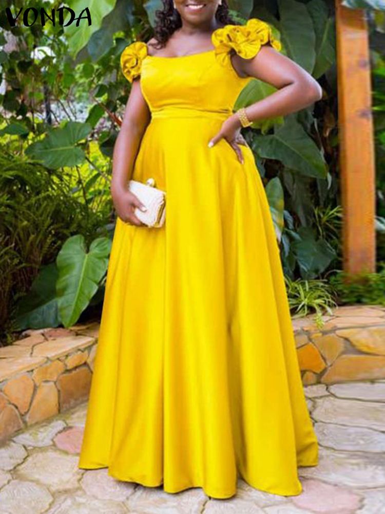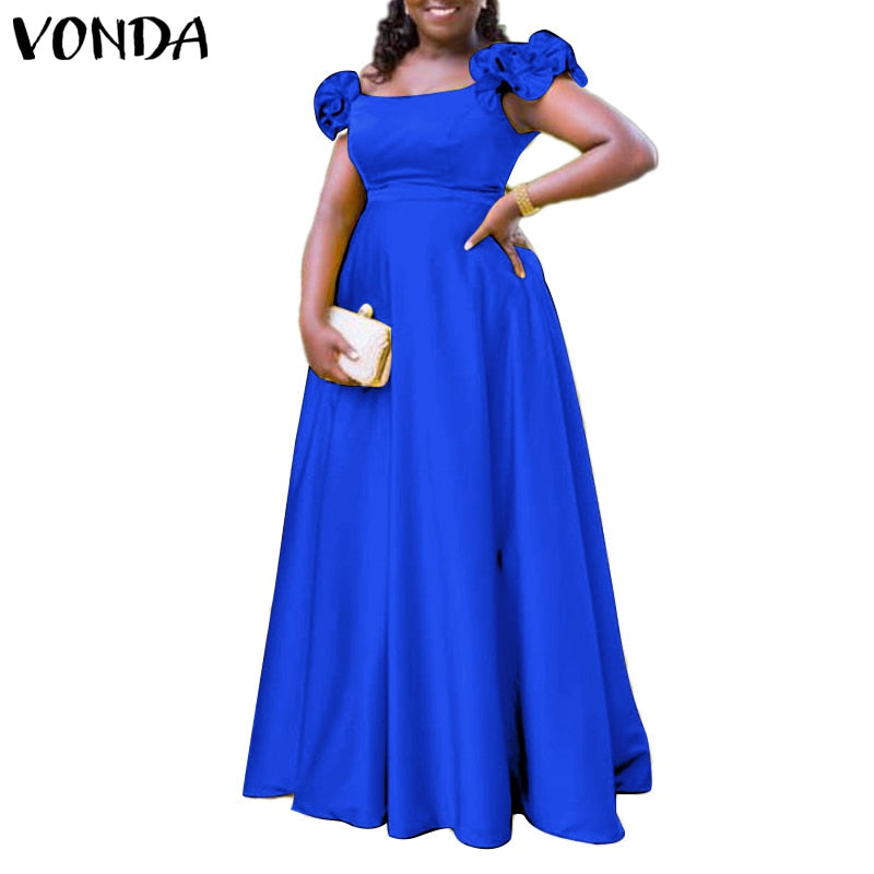 Big Swing A-line Maxi Dress Women Summer Party Dress 2022 VONDA Vintage Solid Color Robe Elegant Bohemian Sundress Femininas