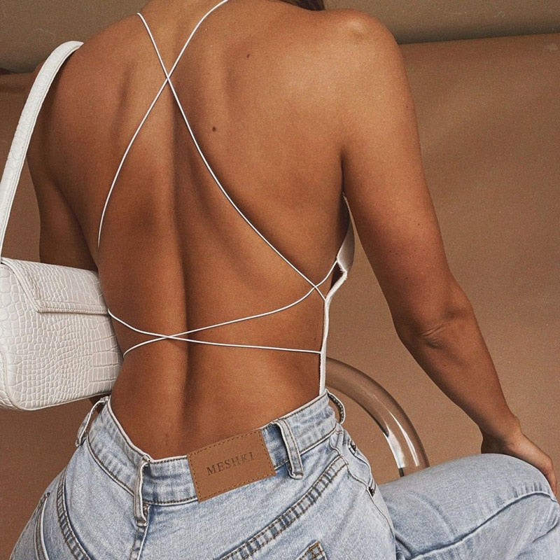 Body Tops Streetwear catsuit Summer Bodysuits Sleeveless Sexy Bodysuit Women Off Shoulder Halter cross one-piece slimming sling