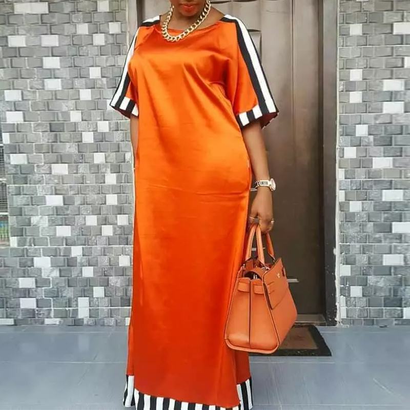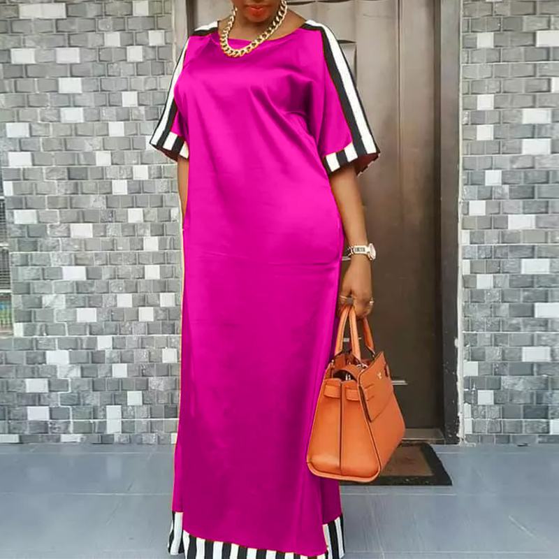 Bohemian Maxi Long Dress VONDA 2022 Women Round Neck Striped Long Maxi Dress Beach Baggy Half Sleeve Vestido Robes Longue