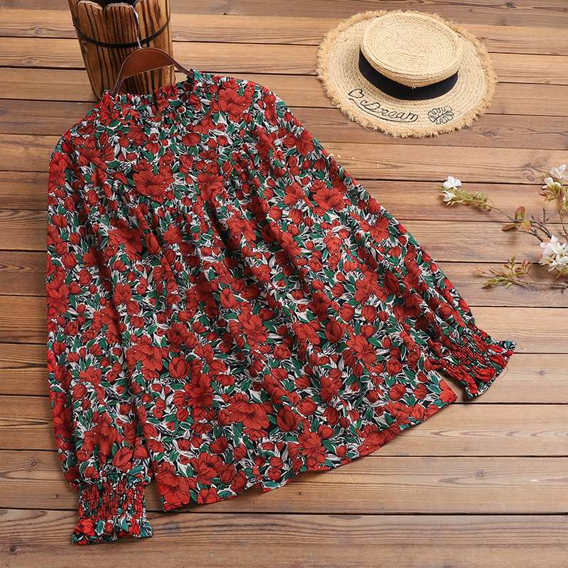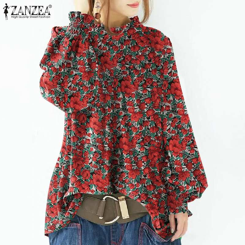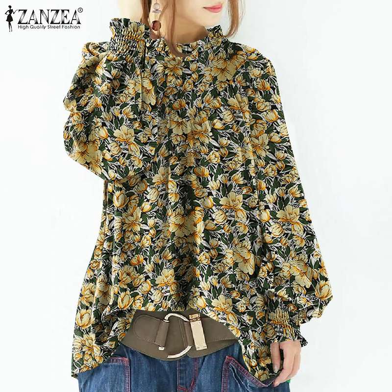 Bohemian ZANZEA Elegant Long Puff Sleeve Party Shirt Women Stylish Floral Printed Blouse Spring Ruffles Blusas Casual Work Tops