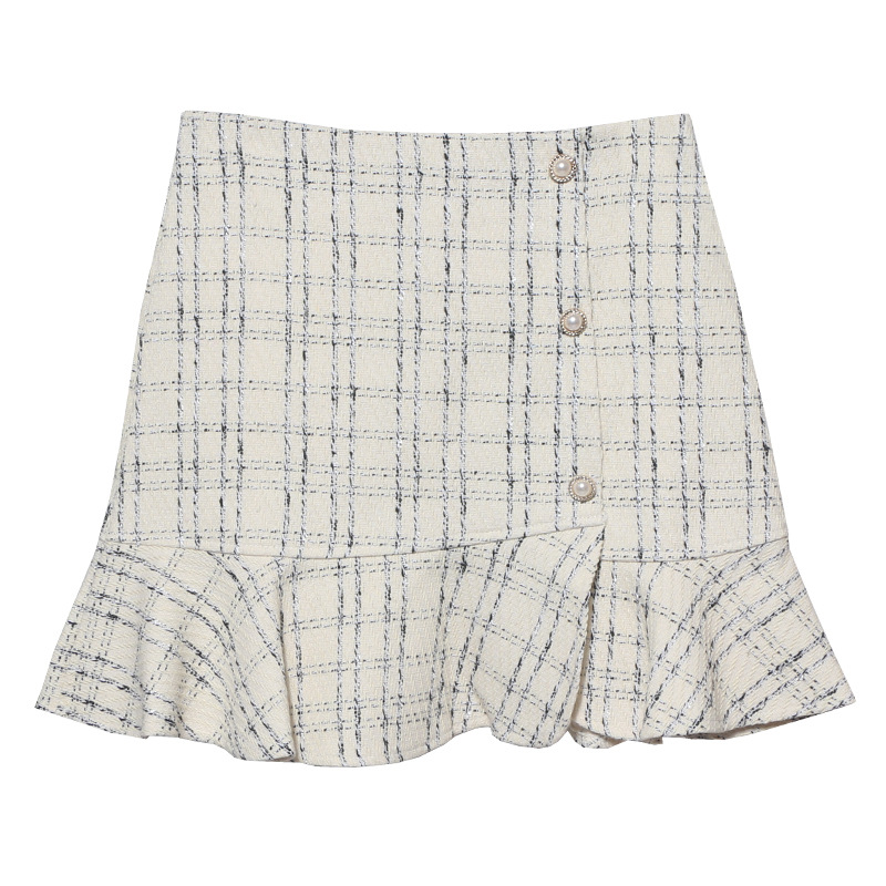 Brownm 2023 New Autumn And Winter Lattice Coarse Flowers Half-Body Skirt High Waist A-Word Bag Hip Irregular Fishtail Skirt 8876