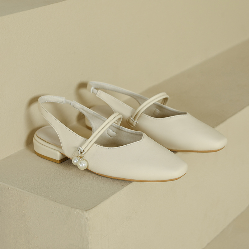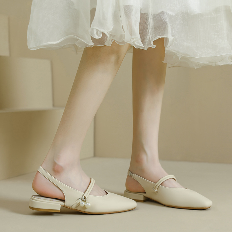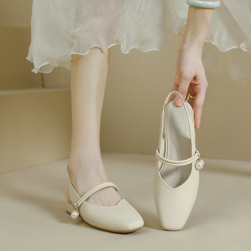 Brownm Brownm 2024 Summer Baotou Sandals With Pearl French Heel Mary Jane Women's Heels