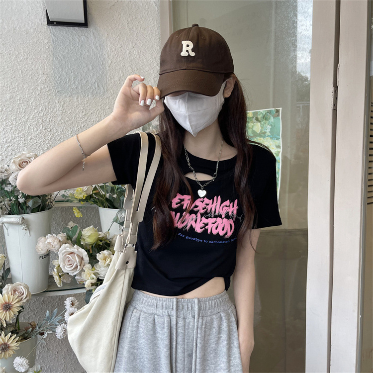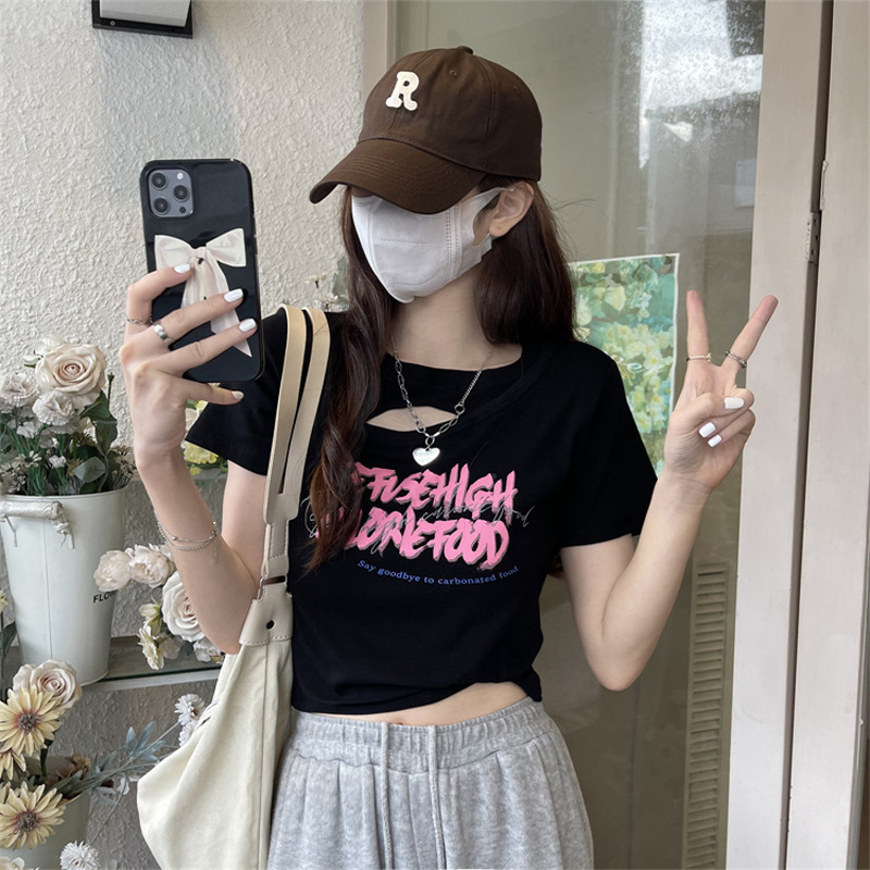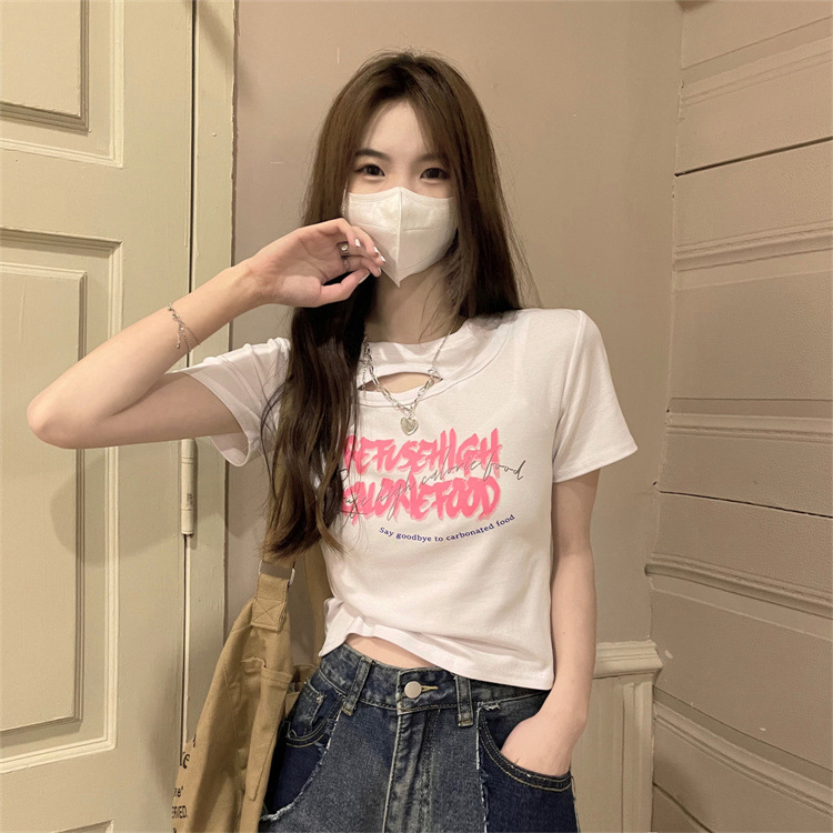 Brownm Brownm Girls Hollow Out Short T-Shirt Female Summer 2024 New Design Sense Slim Slim Short-Sleeved Student Jacket