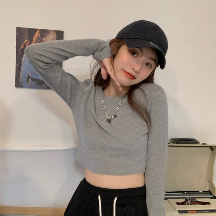 Brownm Brownm Long Sleeve White Bottom Shirt Korean Version Short Crop T-Shirt Female 2023 Autumn Decoration Body Show Thin Jacket Tide