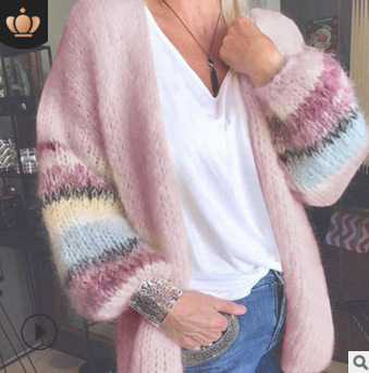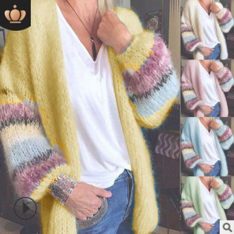 Brownm Brownm New Sweater Striped Mare Hairy Open Shirt Autumn And Winter Knitted Long-Sleeved Coat Women's Clothing