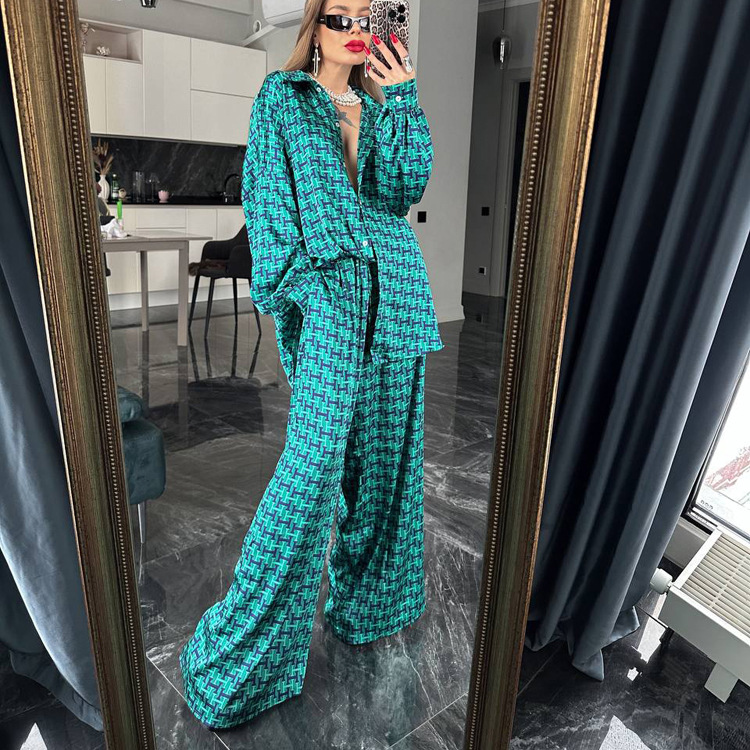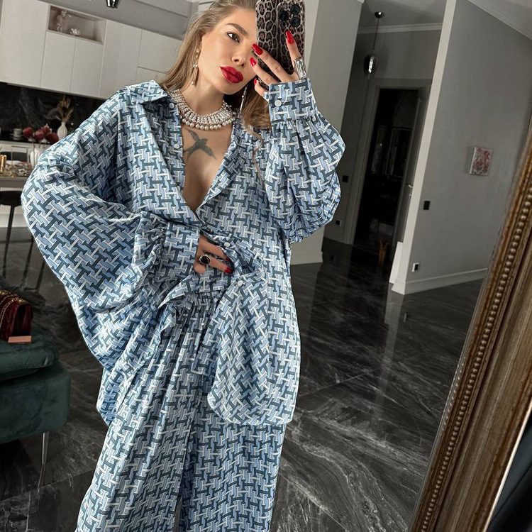 Brownm Brownm Spring / Summer 2024 Women's Wear With A Long-Sleeved Shirt Wide Leg Pants Letter Print Suit