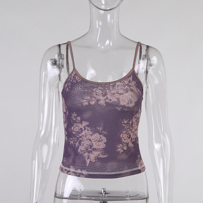 Brownm Brownm Women's Purple Print Design Sense Inside And Outside With Sexy Sling Mesh Gauze Breathable Vest