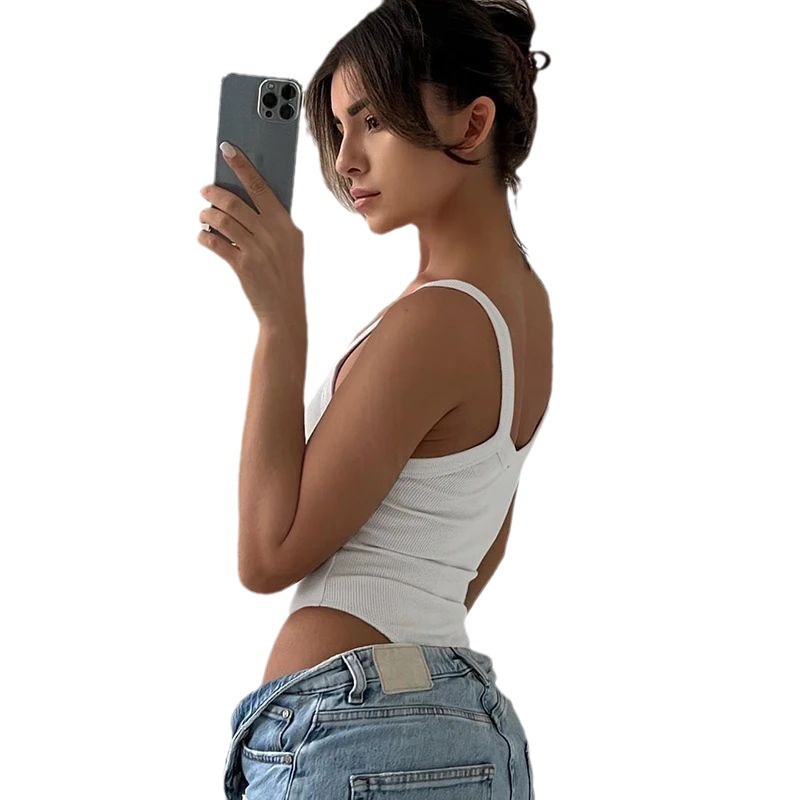 Brownm Brownm Women's Vest Thread Jumpsuit Solid Color U-Neck Sleeveless Tight Jumpsuit Women