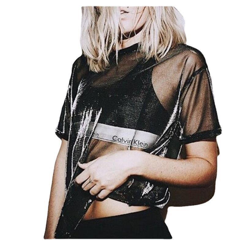Brownm Brownm Women's Wear 2023 New Short-Sleeved T-Shirt Women's Perspective Nightclub Top