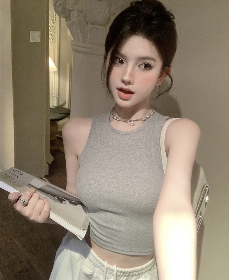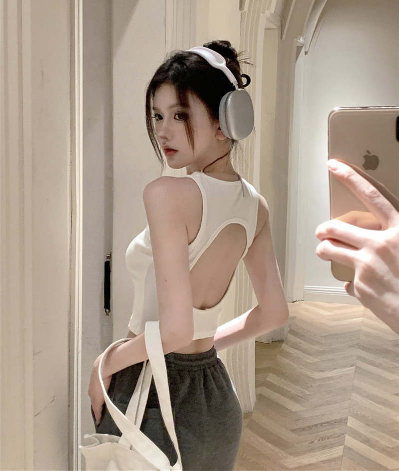 Brownm Brownm Women's Wear 2023 Summer Sleeveless Black Inside With Sexy Short Outside Top