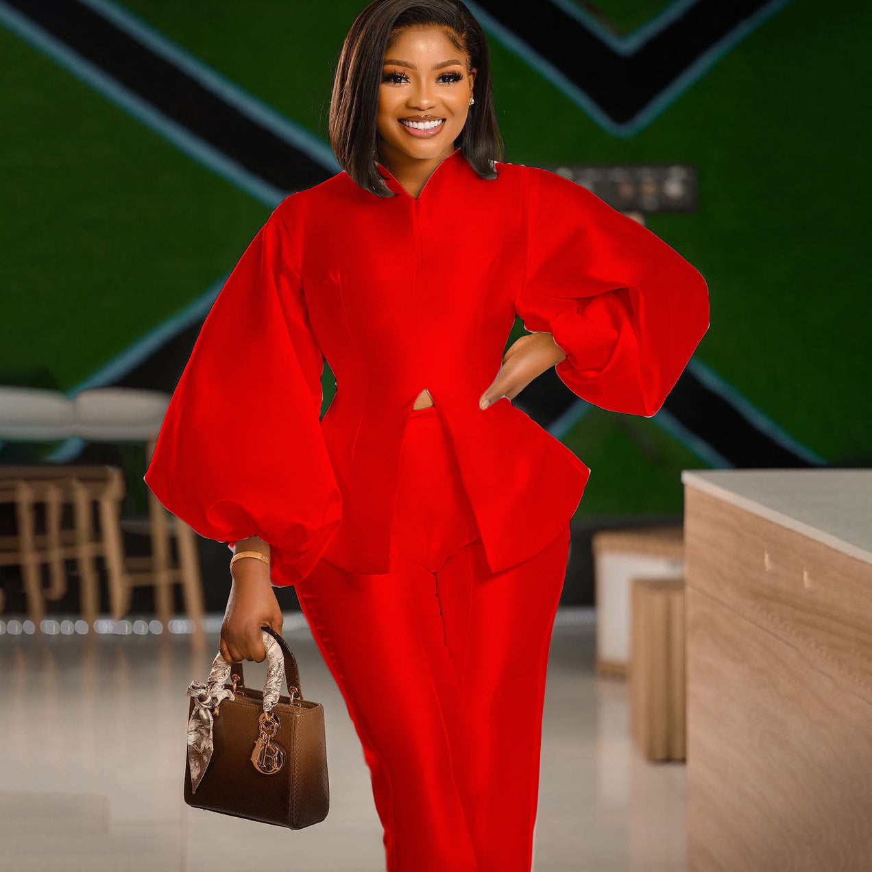 Temperament Commute Blouse And Pants Casual Long Sleeve Top Trousers Suit Two-piece Set