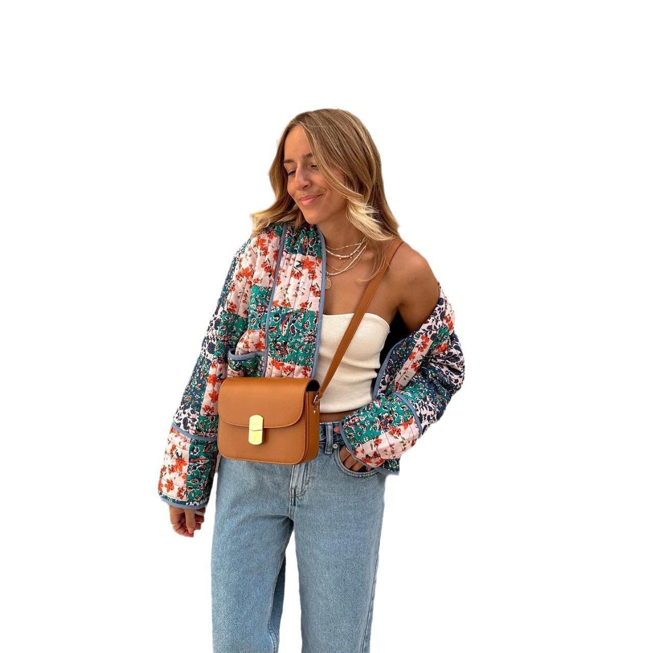 Brownm Elegant Contrast Color Fashionable Stand Collar Coats