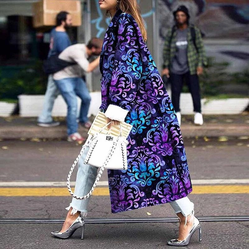 Brownm Extended Double Breasted Printed Loose Trench Coats