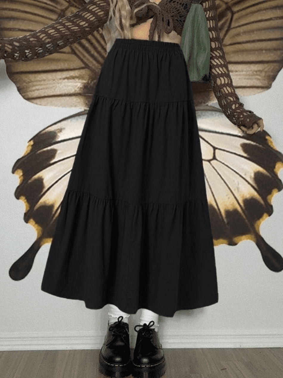 Design: Step into a world of enchantment with our Fairy Maxi Skirt. Combining elements of casual, street, Y2K, grunge, fairycore, and sweet styles, this skirt will transport you to a magical realm. Made from a comfortable cotton blend, it features a flattering elastic waistband. Pair it with your favorite jk shoes for a vintage Y2K look.