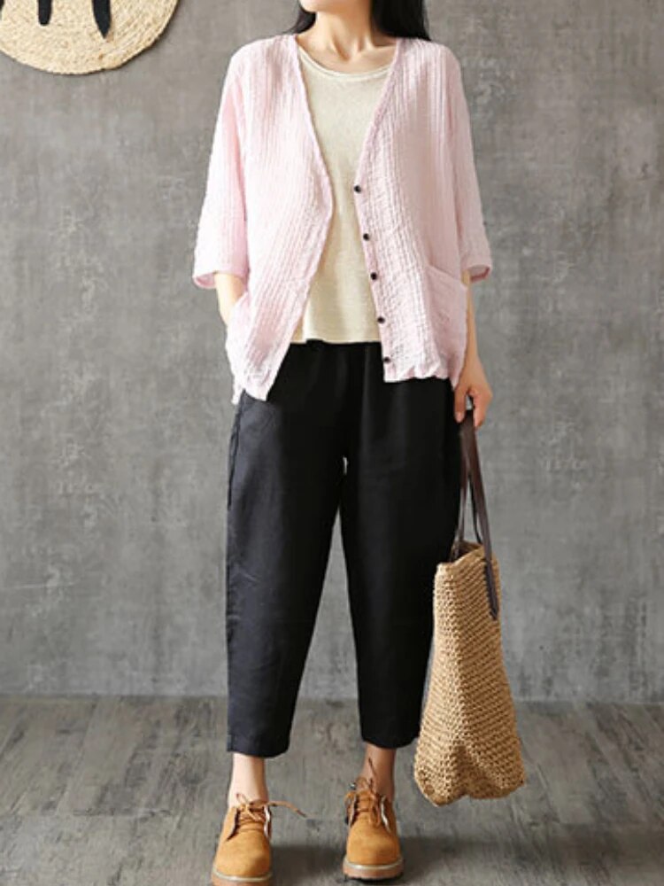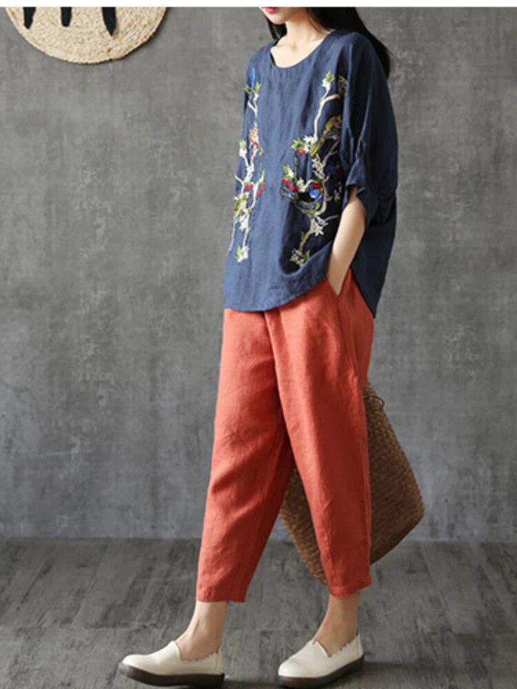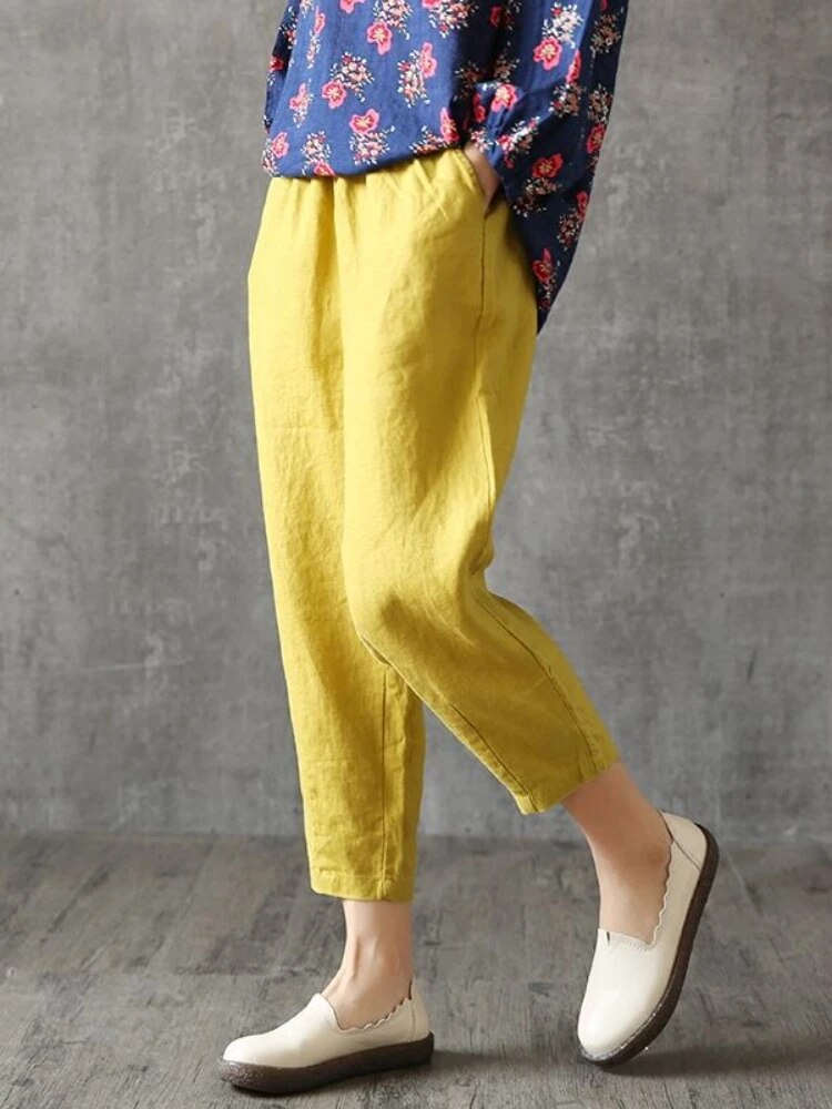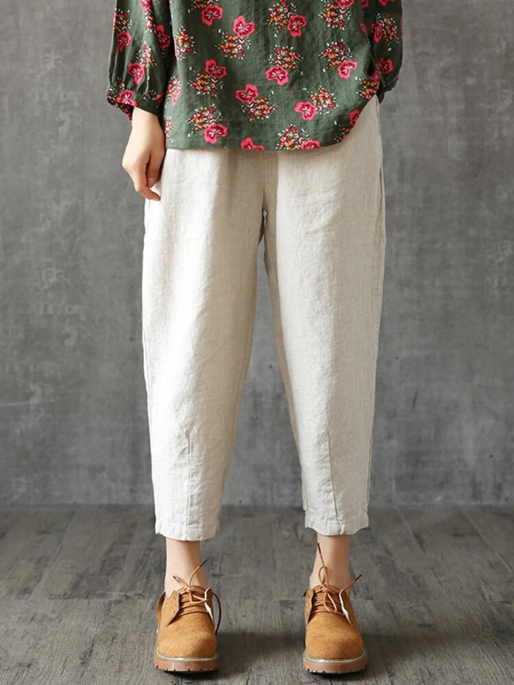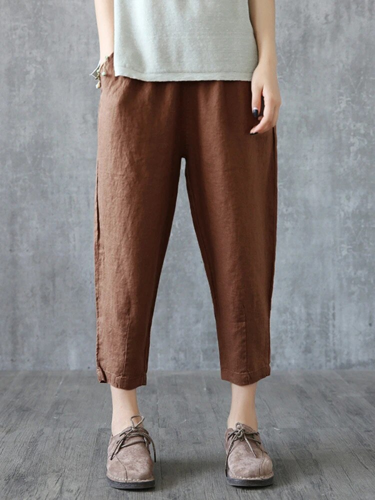 Brownm Fashion Ladies' Cotton and Linen Cropped Pants In Summer Retro Literary Linen Loose Temperament Casual Radish Pants