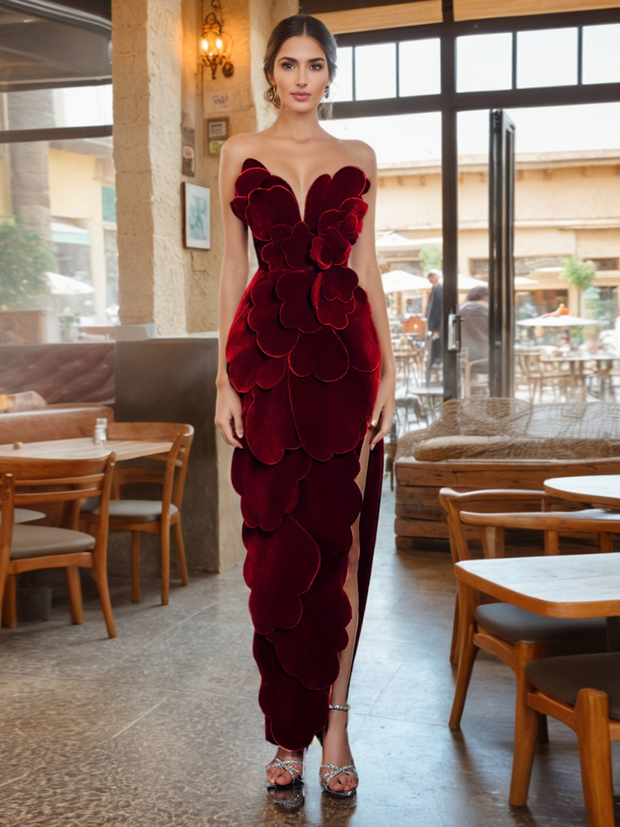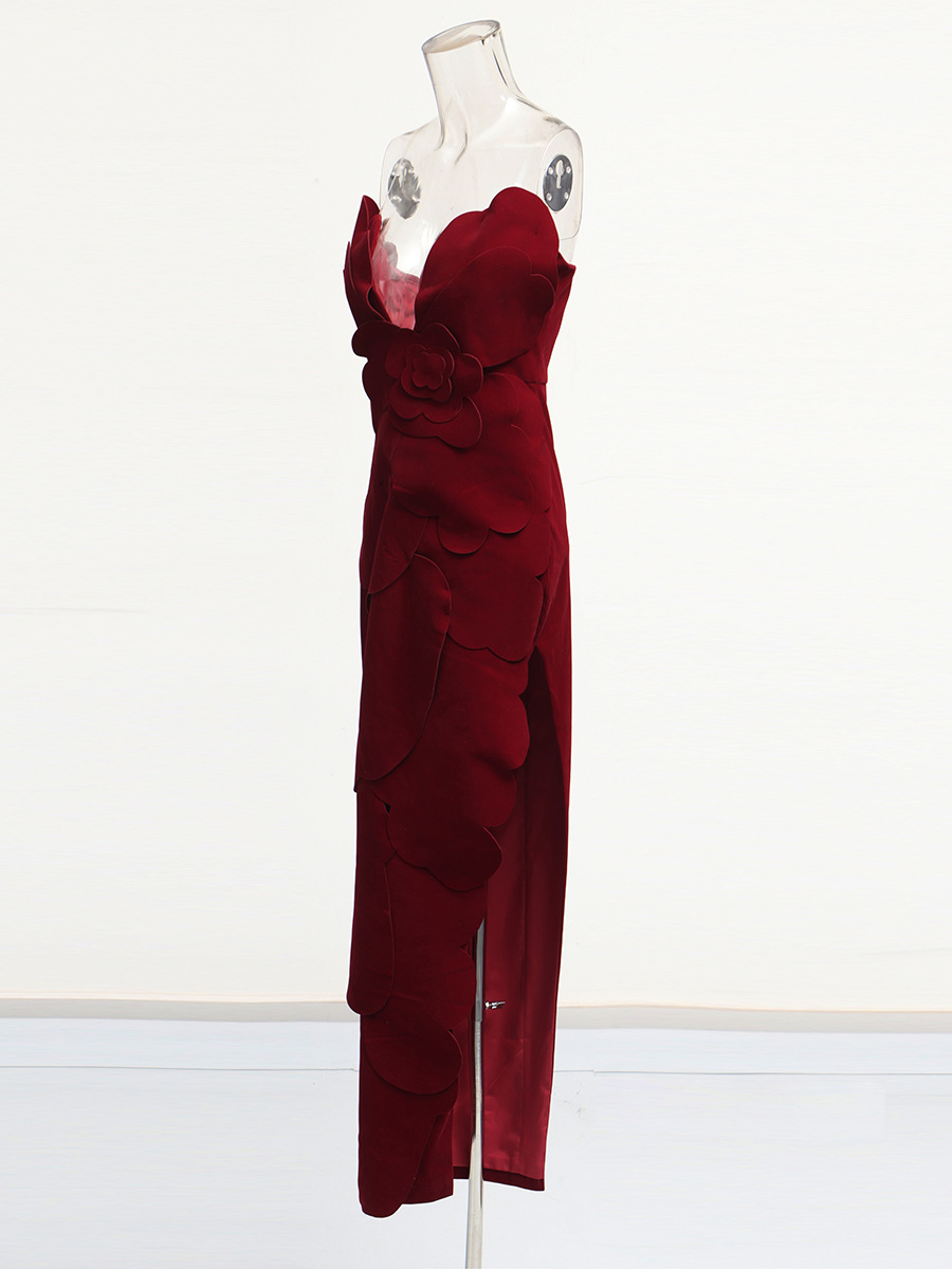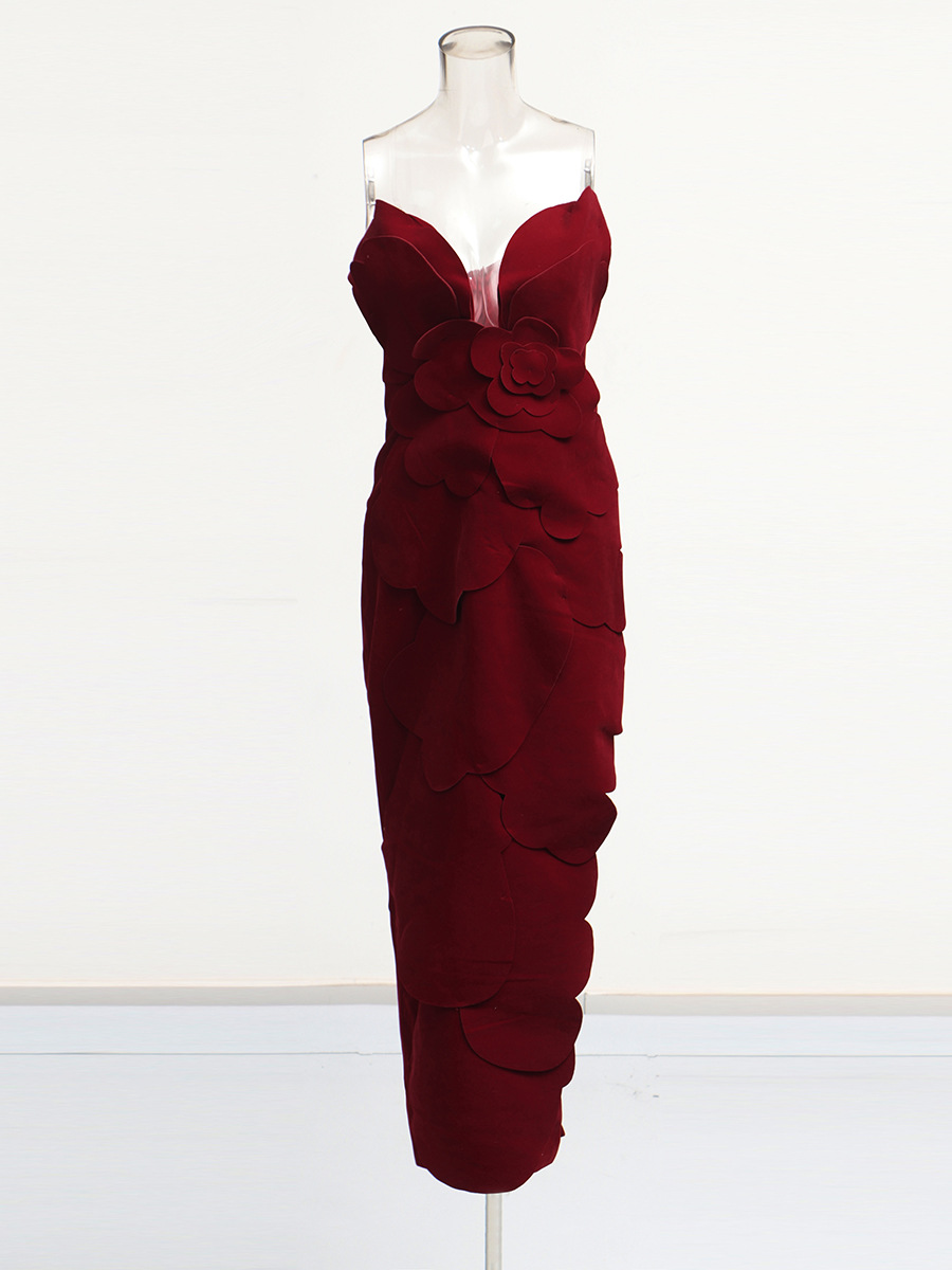 Brownm French Elegant Style Slimming Bra Dress 2025 New Splicing Three-Dimensional Flowers Long Dress Women Summer