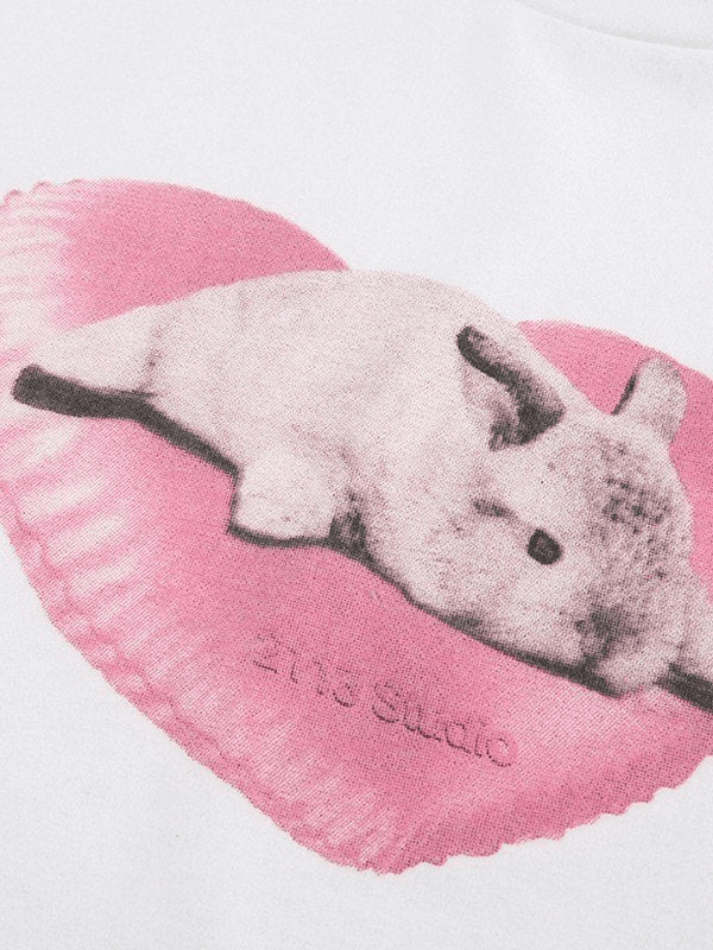 Description: Fall in love with our lovely bunny graphic crop top! This adorable baby tee features a tightened cut silhouette and structured shoulders, giving you a stylish and trendy look. Made with a blend of cotton, polyester, and spandex, it offers a comfortable slim fit. The rabbit and heart pattern adds a touch of sweetness to this must-have piece. Perfect for casual, street, Y2K, vintage, preppy, and cute styles.