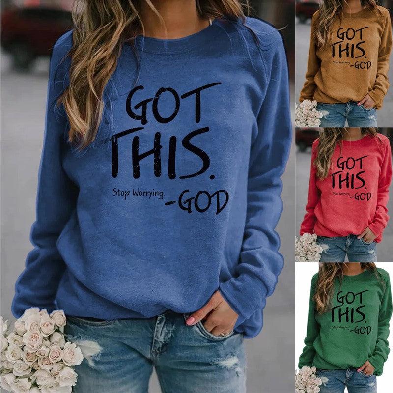 Letter Print Round Pullover Neck Loose Long Sleeves Sweater