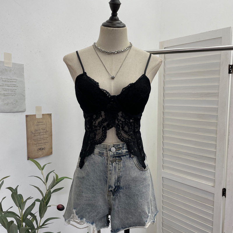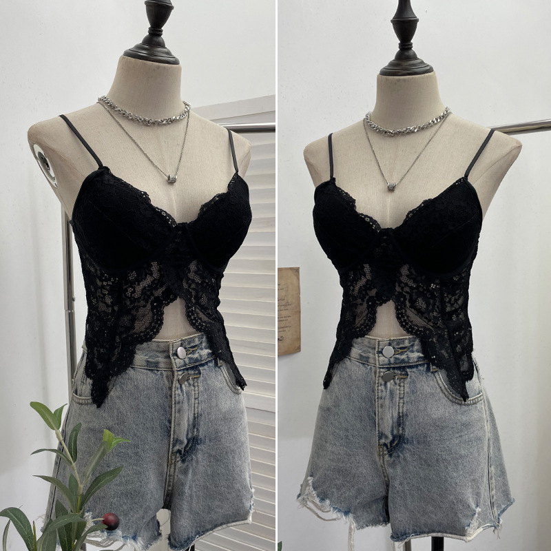 Brownm Real Shot Abstinence Hottie Low Breast With Breast Pad Lace Slings Vest V-Neck Butterfly-Like Umbilical Umb 3045