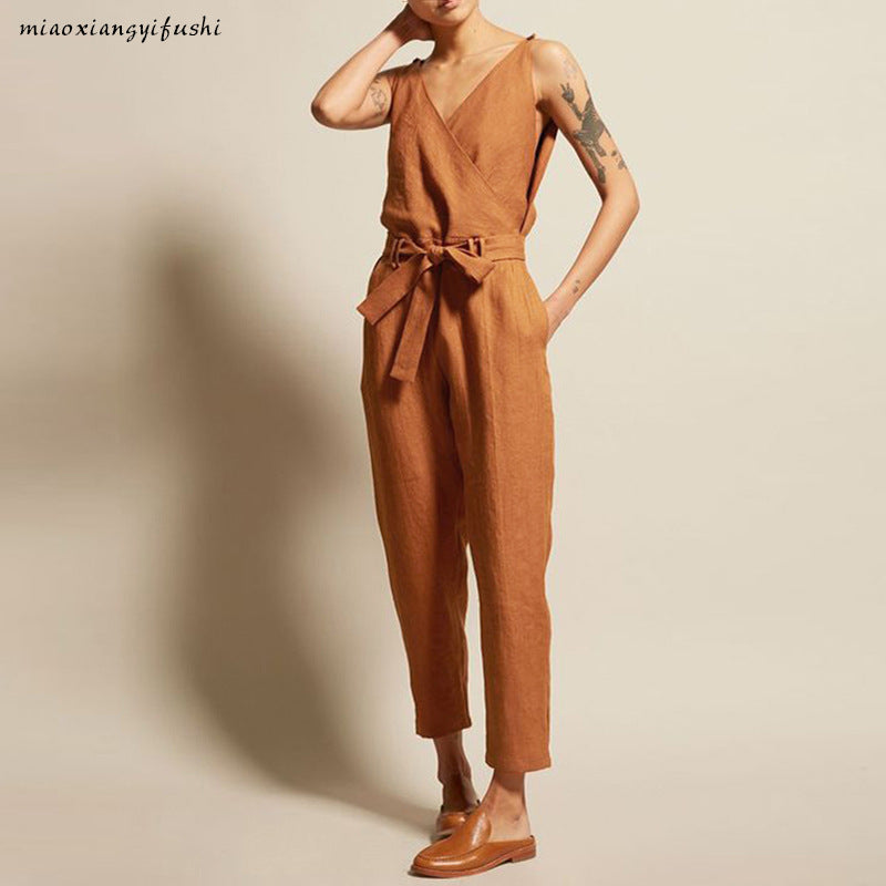 Brownm Retro V-neck Belt Women's Casual Oversized Elegant Trousers