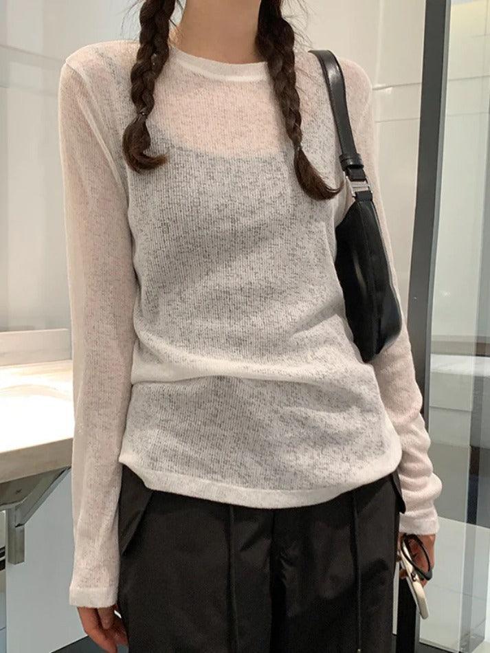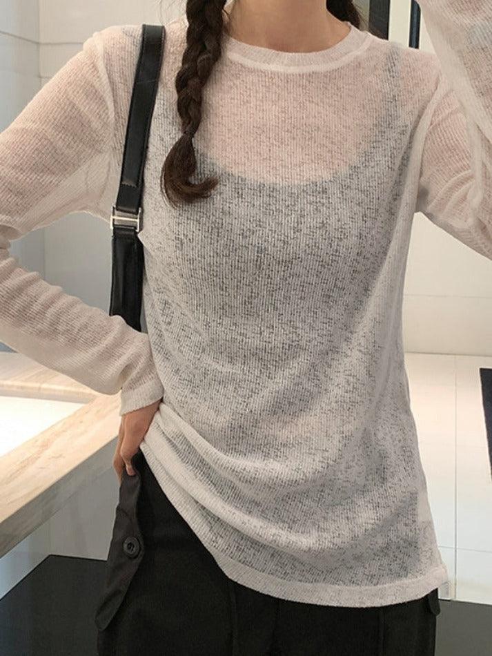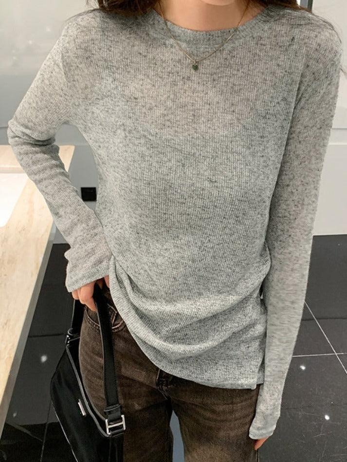 Brownm Solid Color Thin Long Sleeve Knit