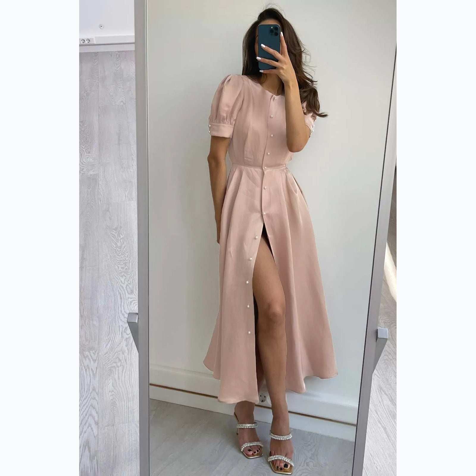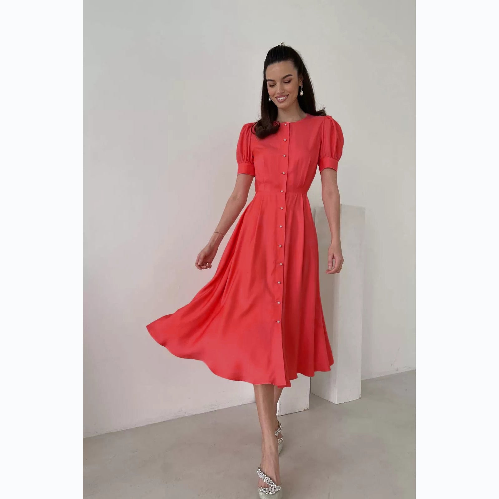 Intellectual Style Summer Fashion Waist-controlled Single-breasted Commuter Dress