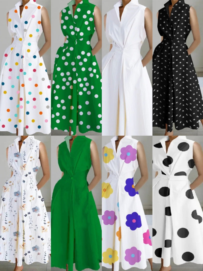 Brownm Summer Commuting Fashion Polka Dot Button Dresses