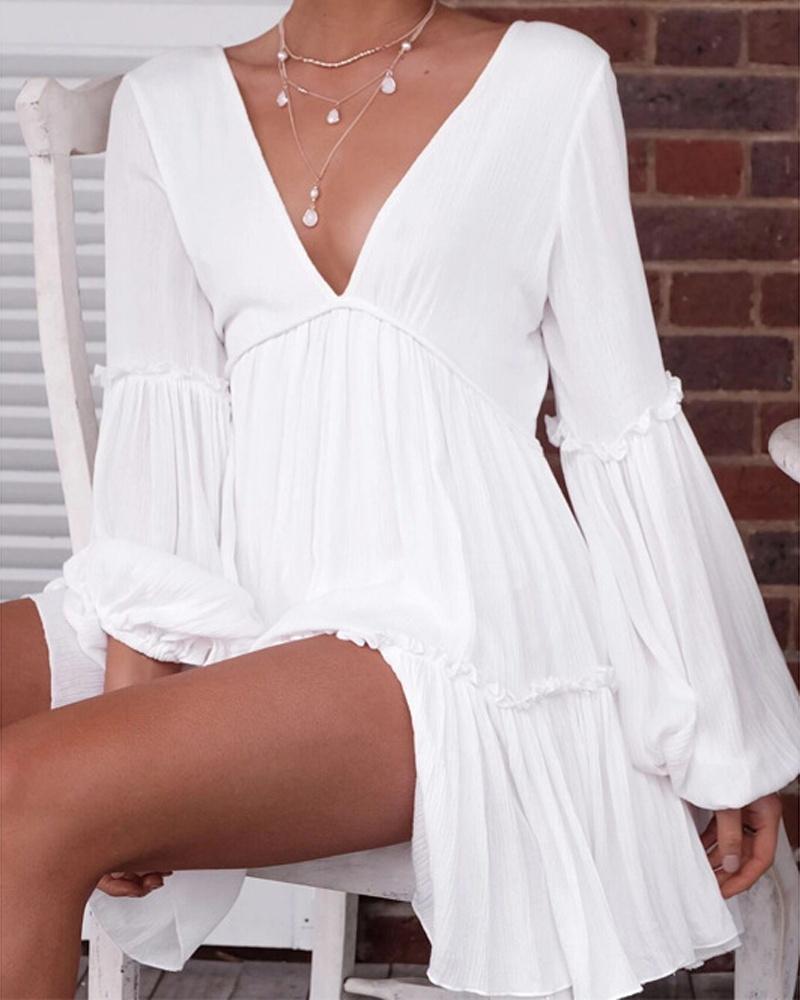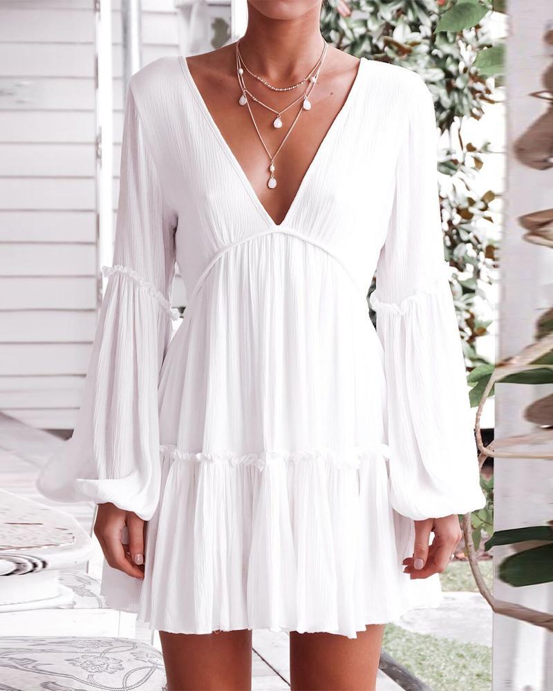 Brownm V Sexy Long Sleeve Lantern Dresses