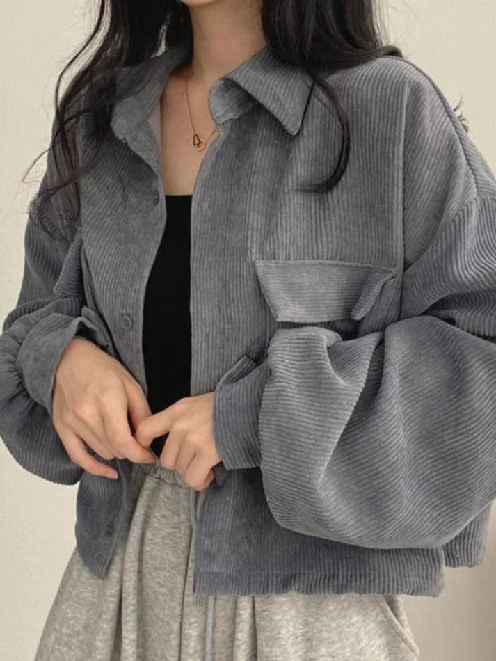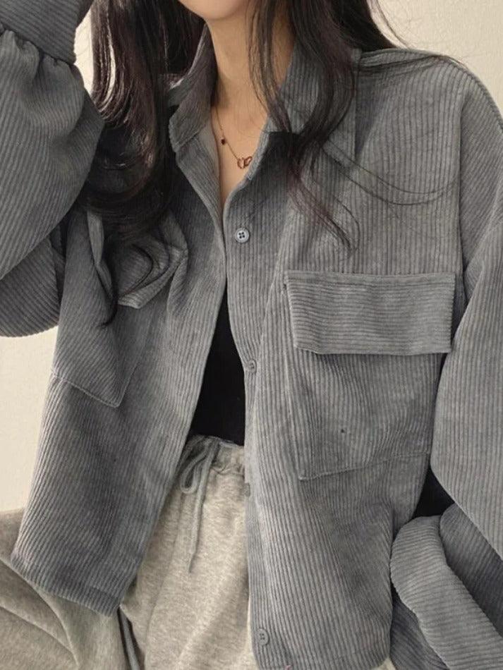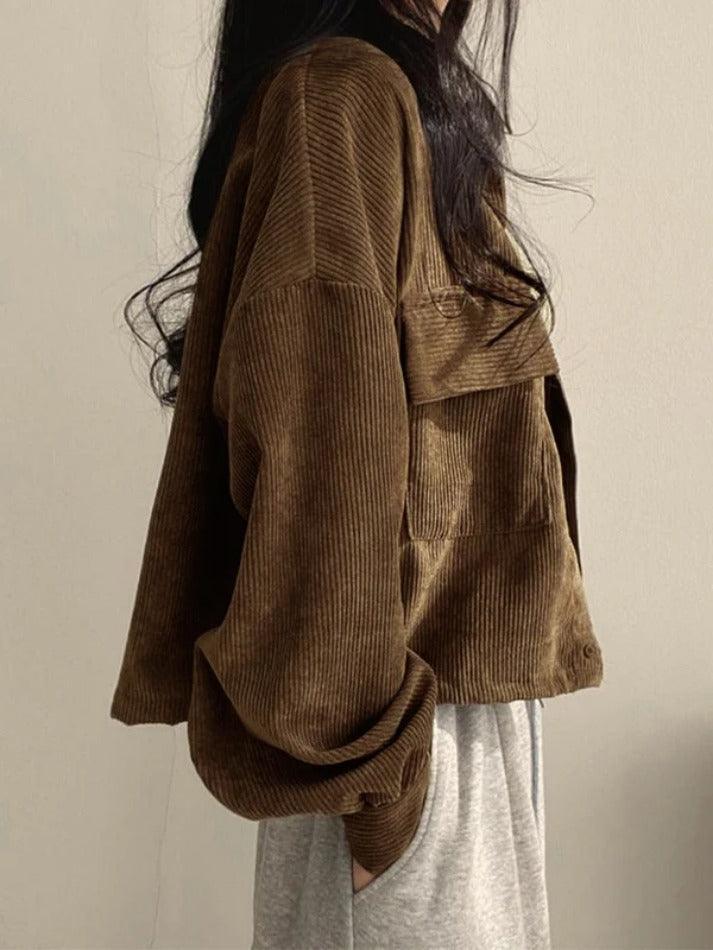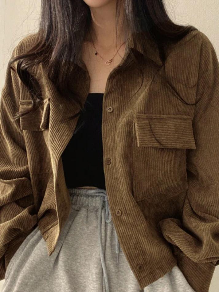 Unique Design: Embrace the winter vibes with this vintage corduroy blouse, perfect for chilly days or a snug indoor setting.